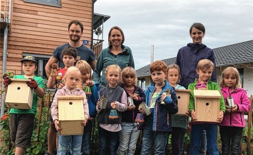 Im Rahmen des Stephanskirchener Ferienprogramms haben 21 Kinder Vogelnistkästen, Insektenhotels aus Konservendosen und Unterschlüpfe für Ohrenkneifer aus bemalten Tontöpfen gebaut. Die Kinder hatten viel Freude beim Bohren, Hämmern und Arbeiten mit Ton und wurden dabei von Anita Schmidleitner, Jana