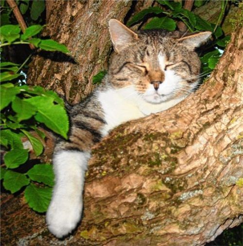 Sitzen, warten, ein bisschen die Augen zumachen und die letzten Strahlen der warmen Nachmittagssonne in diesem Jahr genießen. Katzen wissen es so richtig zu schätzen, wenn die Sonne zum Träumen auf dem alten Holunderbaum einlädt – da wo man dem Himmel am nächsten ist. Foto rehberg
