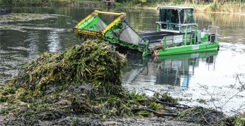 Wasserpflanzen im Weiher beseitigt