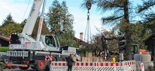 Die Renovierung der Trinkwasserversorgung in Flintsbach geht ihrem Ende entgegen. Vorläufig letzter Höhepunkt war der Einbau eines Schachtes am Ortsausgang in Fischbach. Das rund 15 Tonnen schwere Betonteil wurde mit einem Schwerlastkran ins Erdreich gebracht. „Hier war Millimeterarbeit gefragt“, sa