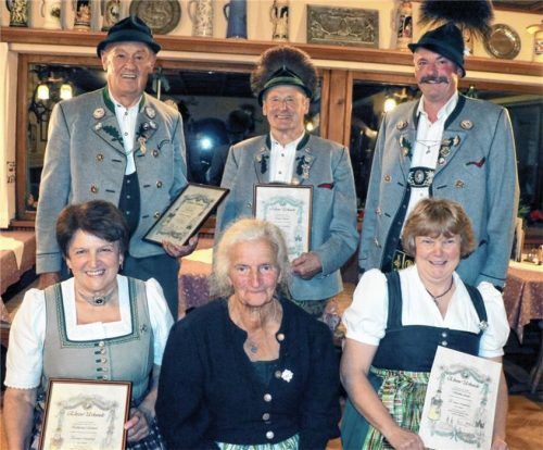 Sechs Männer und zehn Frauen zeichneten Paul Kink, Vorsitzender des GTEV Edelweiß Niederaschau, und seine beiden Stellvertreter Peter Reiter und Sepp Thaurer mit der Ehrenurkunde und dem Ehrenzeichen des Vereins aus. Bei der Generalversammlung des Vereins im Café Pauli bekamen Sepp Reiter, Martin Th