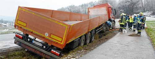 Im Straßengraben landete ein Lastwagen gestern Nachmittag auf der Chiemseestraße zwischen Mauerkirchen und Bad Endorf. Die Staatsstraße war in beiden Richtungen gesperrt. Nach Angaben der Feuerwehr Bad Endorf war der Lastwagen in Richtung Bad Endorf unterwegs. Auf seiner Spur kam ihm ein Pkw entgege