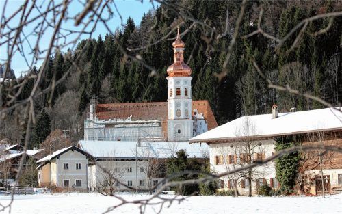 Seit einigen Monaten ist eines der Wahrzeichen im Bergsteigerdorf Sachrang, die katholische Pfarrkirche St. Michael, verhüllt. Das Kirchendach wurde mit neuen Schindeln und der Turm mit Kupfer erneuert. Rechtzeitig zum Weihnachtsfest wurde jetzt der Kirchturm von Gerüst und Planen befreit. Das Gerüs