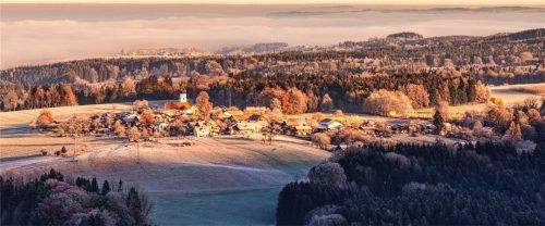 Prächtige Ausblicke auf die Landschaft bietet derzeit die Wetterlage. Unserem Fotografen Rainer Nitzsche gelang dieser morgendliche Blick auf Höhenmoos, das sich schon aus der Nebeldecke emporhebt.Foto Nitzsche