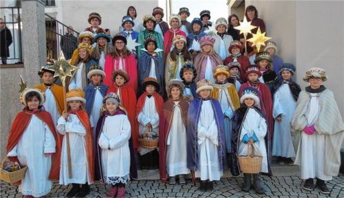 36 Sternsinger machten sich im Anschluss an den feierlichen Gottesdienst in Hochstätt mit Segen durch die Gemeindereferentin Marion Ringler mit der Botschaft auf ihren Weg. Königlich eingekleidet von Rita Winkler überbrachten sie Glück- und Segenswünsche und helfen, die Not der Menschen im Libanon z