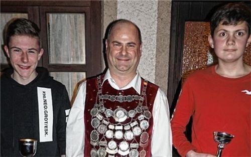 Die Königsproklamation im Schützenheim der Schützengesellschaft Eichenlaub Stamm Raubling war der Abschluss des Königsschießens im Vereinsheim. Schützenmeister Christian Lack bedankte sich bei den zahlreichen Teilnehmern. Mit allen Ehren wurde dem neuen Schützenkönig Max Weinhart (Mitte) die Schütze