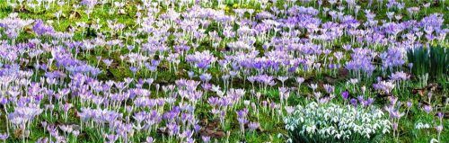 Einen wahren Blumenteppich haben diese Krokusse in einem Garten in der Hofau in der Gemeinde Stephanskirchen gebildet. Auch einige Frühlingsknotenblumen und Schneeglöckchen sind dabei. Auf dem Foto sind „wilde“ Krokusse abgebildet, sie sind etwas kleiner als gezüchtete Krokusse. Ein weiteres großes