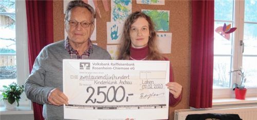 Anlässlich seines 70. Geburtstages bat Georg Berghammer, Chef der Berghammer Landtechnik in Söchtenau (links), seine zahlreichen Gäste, von Geschenken abzusehen. Es wurde eine Spendenbox zu Gunsten des Behandlungszentrums Aschau GmbH – speziell des Heilpädagogischen Wohnheims aufgestellt. Die Gäste