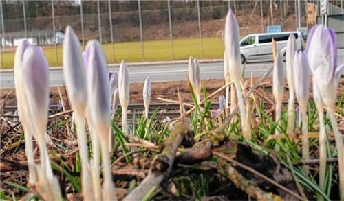 Aus einer besonderen Perspektive fing unsere Fotografin die ersten Frühjahrsboten ein. Entlang der Straße Richtung Bad Endorf schieben sie sich die Krokusse durch das erste Grün.Foto Ammelburger