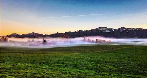 Kurz vor dem Sonnenuntergang hält der Nebel noch einmal Einzug im Priental, wie hier von Wildenwart aus in Richtung Berge zu sehen war. Unserem Leserreporter Mike Loewa aus Aschau gelang diese beeindruckende Aufnahme.Foto Löwa