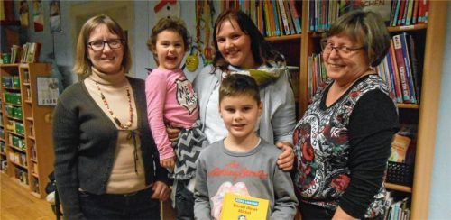 Mit 293 Ausleihungen waren Martina Rieder (Mitte) und ihre Kinder Theresa und Florian aus Gehersberg die eifrigsten Leser der Gemeindebücherei Halfing im vergangenen Jahr. Aus diesem Anlass erfüllte die Bücherei der Familie einen Buchwunsch, der von den Büchereimitarbeiterinnen Annemarie Gruber (rec
