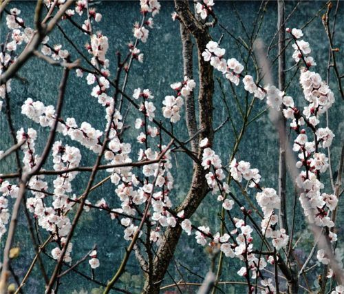 Die ersten Aprikosenblüten in Nachbars Garten frieren noch und warten auf die Bienen. Leser Bernhard Fischbacher aus Brannenburg freut sich über die Blütenpracht an der Hauswand – und auf den möglichen Ernteertrag. Foto Fischbacher