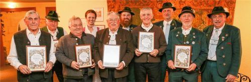 Bei der Hauptversammlung des Trachtenvereins Edelweiß Bad Endorf bedankte sich der Vorsitzende Sepp Dickl junior mit einer Urkunde bei Sebastian Guggenberger und Benno Öttl für 40-jährige Mitgliedschaft, bei Max Dittenhofer, Rudolf Stockinger und Josef Hamberger für 50-jährige Mitgliedschaft und bei