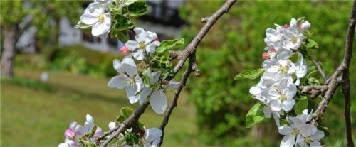 Unbeeindruckt von der Corona-Krise zieht der Frühling mit immer mehr blühenden Obstbäumen ins Land. Am frühesten blühen die Pfirsichbäume. Es folgen Schlehe, Süßkirsche, Birne und Apfel. Doch bis zu den Eisheiligen kann es zu Bodenfrost kommen. Das Foto zeigt einen Klarapfelbaum, dessen Früchte scho
