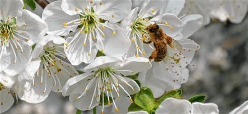 Georg Voit aus Eggstätt hat diese Biene an einer Blüte eines Sauerkirschbaumes in der Gemeinde entdeckt. An den Beinen der fleißigen Honigsammlerin sind die gut gefüllten Pollenkörbchen zu erkennen.Foto Voit