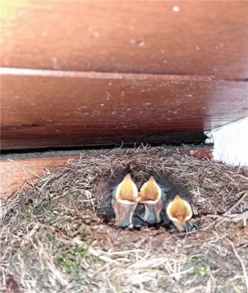 Unser Leser-Reporter Jürgen Dumbeck aus Schechen hat ein Nest bei sich mit drei Rotschwänzchen entdeckt. Die frisch Geschlüpften warten sehnsüchtig auf die Mutter mit Futter. Die Hausrotschwänze West- und Mitteleuropas sind Kurzstreckenzieher und überwintern vorwiegend im Mittelmeerraum, so der Voge