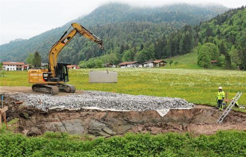 Die Prienbrücke bei Berg wird derzeit erneuert. Im Zuge dieser Arbeiten muss die bestehende Staatsstraße 2093 auf einer Behelfsstraße über die Wiese um die alte Brücke herumgeleitet werden. Der Verlauf der Prien wird dazu für einige Monate geändert, das Bachbett wird unter der Baustraße in ein enges