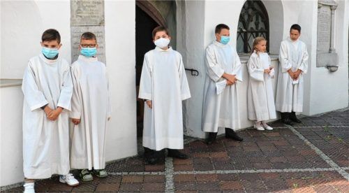 Ein Mädchen und fünf Buben feierten jetzt coronabedingt nachträglich ihre Erstkommunion in der festlich geschmückten Pfarrkirche Sankt Margaretha in Frasdorf. Nur die Hälfte der Drittklässler beging ihren großen Tag in der Kirche, die anderen Buben und Mädchen holen das Ereignis im Herbst nach. Ledi