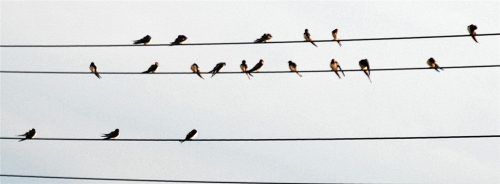 Schwalben-Rendezvous auf der Lichtleitung