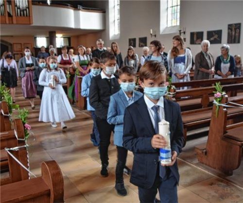 Nach dem Lockdown im März können jetzt wieder in Gruppen Erstkommunionfeiern abgehalten werden. Üblicherweise findet die Erstkommunion überwiegend im Monat Mai statt. Der Corona-Pandemie geschuldet können aber nur nach den üblichen Abstands- und Hygienevorschriften die Gottesdienste in den Pfarrkirc
