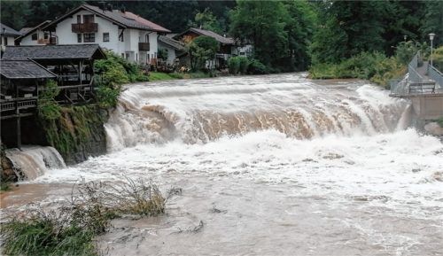 Innerhalb weniger Stunden wurde infolge der anhaltenden Regenfälle aus dem eher träge dahinfließenden Kieferbach in Kiefersfelden ein reißender Fluss, der seine Gischt und Wellen gefährlich nahe ins Dorf trug (Bild links). In Neubeuern wirkten überflutete Felder an der südlichen Ortseinfahrt wie ein
