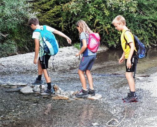 Zehn Kinder im Alter von neun bis zwölf Jahren gingen mit Sepp Eckl vom Veteranenverein Söchtenau im Rahmen des Ferienprogramms Söchtenau durch die Gießenbachklamm bei Kiefersfelden. Der Weg führte entlang des Gießenbachs über die Schlucht zur Schopper-Alm. Oben angelangt streichelten die Kinder die