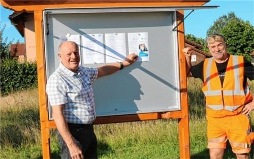 Zwei zusätzliche Tafeln für amtliche Bekanntmachungen gibt es in Eggstätt. Neben dem Standort am Rathausplatz steht jetzt jeweils eine weitere an der Priener Straße, Ecke Chiemseestraße, und in Meisham Am Schmittenberg. Bürgermeister Christian Glas brachte mit Bauhofleiter Sebastian Weber senior (re