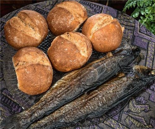 In Pfraundorf , St. Nikolaus, entdeckte unsere Fotografin eine ganz andere Erntedankdekoration: Fünf Brote und zwei Fische, wie bei der wundersamen Brotvermehrung durch Jesus Christus am See Genezareth. An der Dekoration beteiligt war maßgeblich die „gute Seele“ des Pfraundorfer Pfarrhauses, Maria S