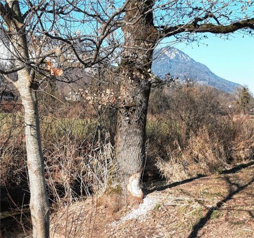 Bei einem Spaziergang hat unser Fotograf das Werk eines Bibers entdeckt: Vor seinen scharfen Zähnen ist nichts sicher – im Feuchtgebiet des Kreutsees in der Gemeinde Kiefersfelden hat das Tier eine mächtige Eiche angenagt. Sie dürfte wohl in den nächsten Tagen komplett von ihm gefällt werden.