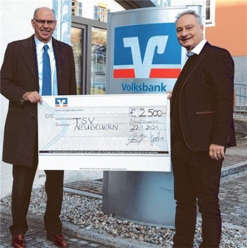 Einen Scheck in Höhe von 2500 Euro überreichte Josef Gschwendtner (links), Mitarbeiter der VR Bank Neubeuern, an den Vorsitzenden des TSV Neubeuern, Alexander Schopf. Mit dieser Spende unterstützt das Finanzinstitut den Neubau des Vereinsheims, das Ende April für die Sportler der acht Sparten zur Ve