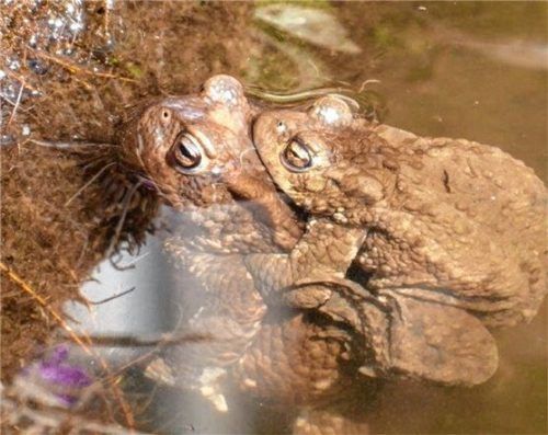 Im Gartenteich von Leser-Reporterin Helga Bachmaier aus Großholzhausen findet gerade eine Krötenhochzeit statt. Das Männchen umklammert seine Herzensdame ganz fest und gibt sie keine Minute frei, um dem Rivalen im Teich keine Chance zu geben, auch mal so schön herumgetragen zu werden.Foto Bachmaier