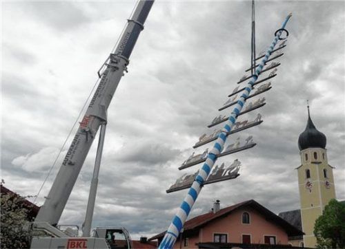 Alle vier Jahre stellt der Trachtenverein D‘Lindntaler Lauterbach am 1. Mai den Maibaum am Dorfplatz auf. Normalerweise findet zu diesem Anlass ein großes Fest statt. Dieses Mal wurde der Baum coronabedingt erst jetzt mithilfe eines Krans in die Höhe gehievt und ohne gemeinsames Beisammensein aufges