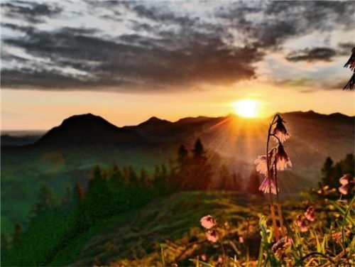 Während im Tal schon die Kastanienbäume blühen, sind in den Bergen noch typische Frühlingsblumen zu finden. Auf sonnigen Wiesen stehen Enziane und Mehlprimeln in voller Pracht, und an schattigen Stellen sind wie hier am „Bankerl“ auf dem Weg vom Tatzelwurm zum Brünnsteinhaus noch Soldanellen – im Vo