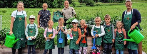 Der Obst- und Gartenbauverein Samerberg hat im neuen Kindergarten zwei Hochbeete und einen Beeren-Naschgarten gespendet. Die beiden Vorstandsmitglieder, Gärtnermeister Peter Köpke und Regina Stuffer, pflanzten mit den Kindern Johannisbeeren, Jostabeere, Stachelbeeren, Brombeeren und Himbeeren. Vorsi