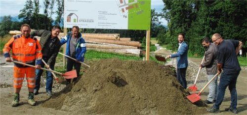 Nachdem der Bebauungsplan „Mitterfeldstraße“ in Riedering in Kraft getreten ist, wurde kurz darauf mit den Erschließungsmaßnahmen begonnen. Nun erfolgte der offizielle Spatenstich. Neben vier Einfamilienhäusern und einem Doppelhaus in ökologischer Holzbauweise entstehen hier auch im Rahmen des Einhe