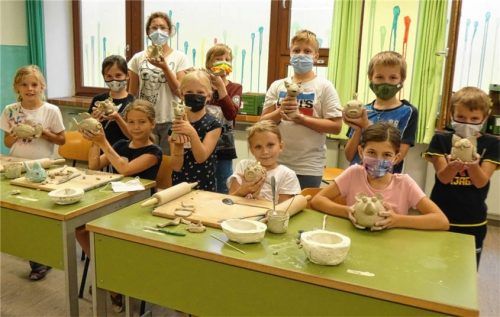 Das Ferienprogramm der Gemeinde Großkarolinenfeld ist in vollem Gange. Beim Töpferkurs, geleitet von Erika Huber und Renate Gsinn, wurde geknetet, gerollt und gewalzt. So entstanden aus Ton und mit etwas Fantasie kleine Igel, Hühner, Häschen, Fische und vieles mehr. Voller Stolz präsentierten die Ki