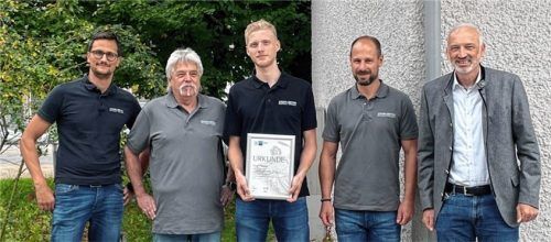 Mit Stolz ehrt die Geschäftsführung der Rohrdorfer-Gruppe und der Union Beton Werke GmbH den erfolgreichen Ausbildungsabschluss ihres Auszubildenden Timo Pfandler. Dieser beendete die Lehre zum Verfahrensmechaniker in der Steine- und Erdenindustrie (Fachrichtung Transportbeton) mit einer herausragen