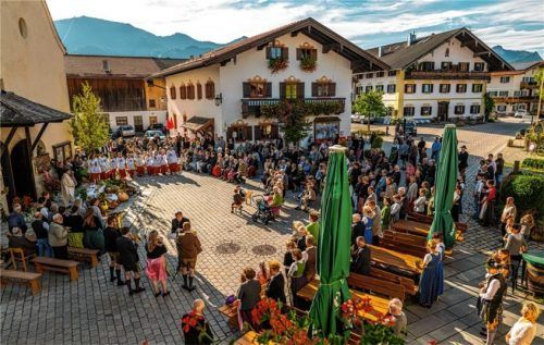 Bei schönem Wetter konnte der Samerberger Erntedank-Gottesdienst unter Leitung von Diakon Günter Schmitzberger auf dem Dorfplatz Törwang im Freien stattfinden. Gemeinsam mit dem Samerberger Gartenbauverein wurde dessen 125-jähriges Vereinsjubiläum gefeiert. Musikalisch umrahmt wurde der Gottesdienst
