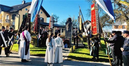 Der Tag der Vereine wurde in Zaisering mit einem Gottesdienst in der St.-Vitus-Kirche mit Pfarrer Guido Seidenberger und Diakon Eugen Peters gefeiert. Im Anschluss legten die Vereinigungen mit musikalischer Begleitung im Gedenken ihrer verstorbenen Vereinsmitglieder einen Blumenkranz am Kriegerdenkm