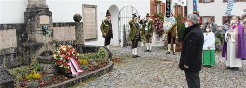 Mit einer Kranzniederlegung anlässlich des Volkstrauertags gedachten zahlreiche Flintsbacher Bürger und Vereine an die Opfer von Krieg, Gewalt und Vertreibung. Hier Flintsbachs Erster Bürgermeister Stefan Lederwascher im stillen Gedenken.