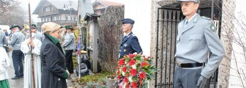 Zur Erinnerung an das Leid vieler Menschen durch kriegerische Handlungen fand am Kriegerdenkmal in Nußdorf eine Gedenkfeier statt. Nußdorfs Zweite Bürgermeisterin Susanne Grandauer bei der Kranzniederlegung.