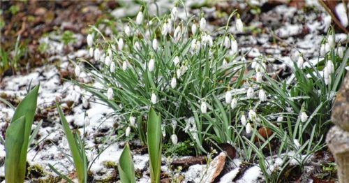 Das Schneeglöckerl trägt seinen Namen, weil es seine glockenartigen Blüten von unten durch den Schnee hindurch an die Wintersonne treibt. Heuer war es umgekehrt: Das Schneeglöckerl war, durch die vergangenen warmen Tage aufgeweckt, noch vor dem Schnee im Garten präsent. Jetzt aber kam die weiße Prac