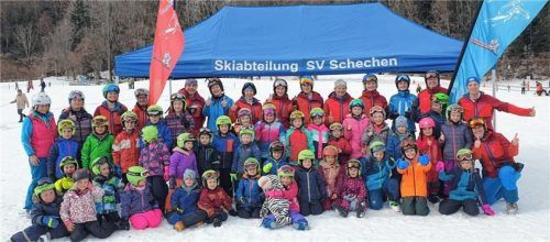 Spaß hatten die 38 Zwergerl des SV Schechen beim Anfängerskikurs in Sachrang, der jetzt bei bestem Wetter stattfand. In sechs Gruppen machten die Kinder ihre ersten Erfahrungen mit den rutschigen Brettern und klobigen Schuhen. Nach erfolgreichen Bremsversuchen folgten bald erste Schussfahrten und Pf