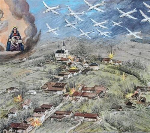 An den 22. Februar 1945 erinnert ein Votivbild in der Pfarrkirche St. Jakobus der Ältere in Rohrdorf. Kurz vor Ende des Zweiten Weltkrieges warfen alliierte Flieger 135 Bomben über der kleinen Gemeinde ab. Neun Todesopfer waren dabei zu beklagen. Aus Dankbarkeit, dass das Dorf keinen größeren Schade
