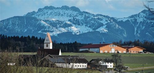 Gleich hinter Straßkirchen bei Vogtareuth geht es hinauf auf die Kampenwand. So scheint es zumindest auf diesem Bild. Dabei sind die Berge rund 30 Kilometer entfernt. Verantwortlich für die Täuschung ist der Föhn, der mit seiner klaren Luft die Kampenwand unmittelbar an Straßkirchen heranrückt – zum
