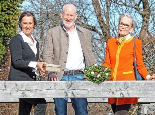Aschaus Zweiter Bürgermeister Michael Andrelang (Mitte) konnte bei einem Termin im Rathaus eine besondere Spende entgegennehmen: Isa Wrede-Hardt (links) und Dr. Ute Correll unterstützen durch ihr Hobby und soziales Engagement die Gemeinde. Aus allem, was die Natur so hergibt, basteln die Aschauerinn