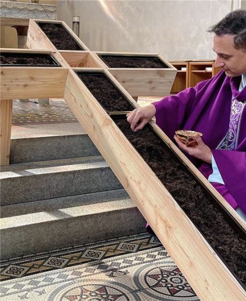 Die Besucher der Pfarrkirchen Haidholzen und Schloßberg erwartet in der Fastenzeit ein großes mit Erde befülltes Kreuz. Dorthinein können sie Weizenkörner stecken. „Die Körner stehen für alles, was sie beklagen oder wofür sie Gott in dieser Zeit besonders um Leben oder Belebung bitten“, so Pfarrer F