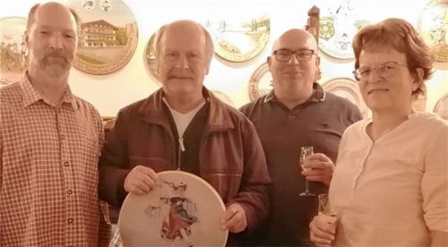 18 Eggstätter Moosschützen sind beim Jahresabschlussschießen angetreten. Nach dem Wettkampf gratulierte (von links) Schützenmeister Michael Lex dem Sieger Clemens Gruber, dem Zweitplatzierten Franz Linner sowie Renate Lindner, die auf dem dritten Rang landete. Gruber freute sich über seine Endscheib