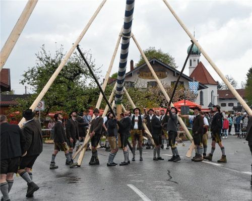 Eine besondere Herausforderung für die Jungbauernschaft Pfraundorf als Maibaumfest-Ausrichter, ist die Länge ihres prächtigen Zunftbaumes, der nicht mehr als 29 Meter lang sein darf, weil er sonst zu nahe an die Bahnschranke heranreichen würde, die ja immer in kurzen Abständen auf- und zugeht. Mit d