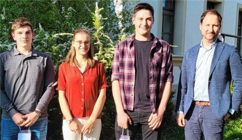 Drei Riederinger schlossen ihre Ausbildung mit einem Staatspreis ab. Dies nahm Bürgermeister Christoph Vodermaier (rechts) zum Anlass, den Absolventen der Bad Aiblinger Berufsschule zum bestandenen Gesellenbrief zu gratulieren. Johanna Breitrainer aus Moosen schloss ihre Ausbildung bei der esmo AG z